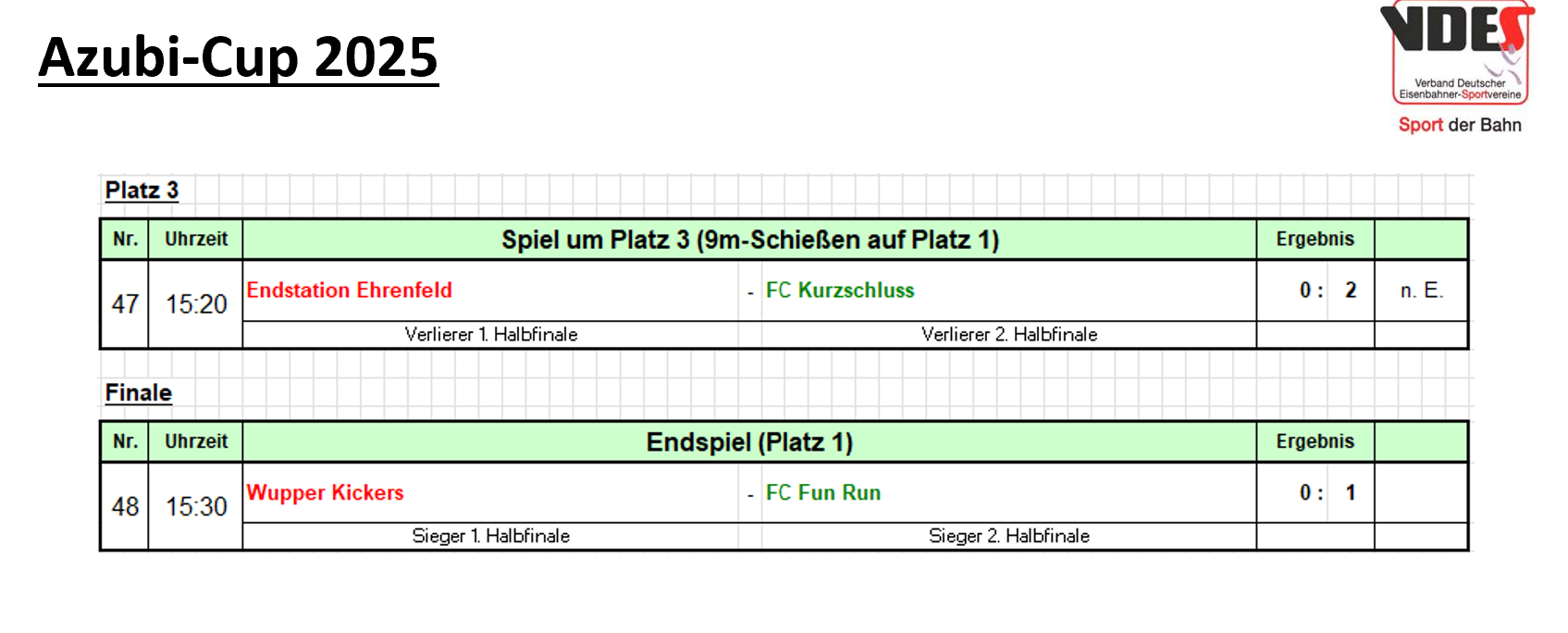 Das Fußballturnier gewann schließlich das Team FC Fun Run von der DB InfraGO aus Hagen, die den Sieg gebührend feierten. Es war einspannendes Finale. Generell verliefen viele Spiele in diesem Turnier denkbar knapp, sodass in der Endrunde gleich sechsmal das 9-Meter-Schießen die Entscheidung bringen musste.
